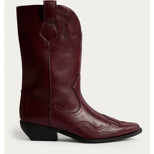 Faux Leather Western Inspired Cowboy Boots in Burgundy