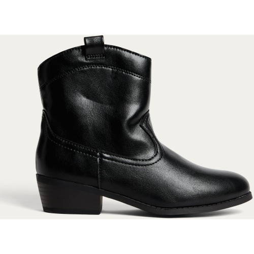 F&F Girls Faux Leather Western Ankle Boots in Black