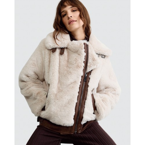 F&F Girls Faux Shearling Aviator Jacket in Brown