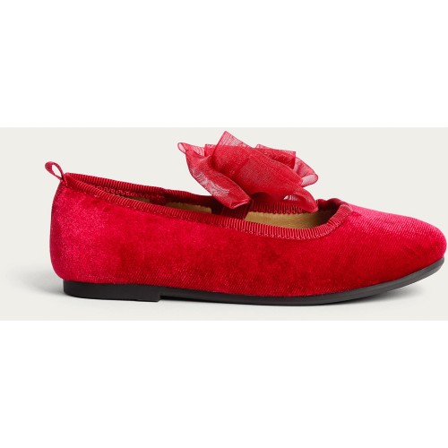 Girls Velvet Bow Detail Ballet Shoes in Red