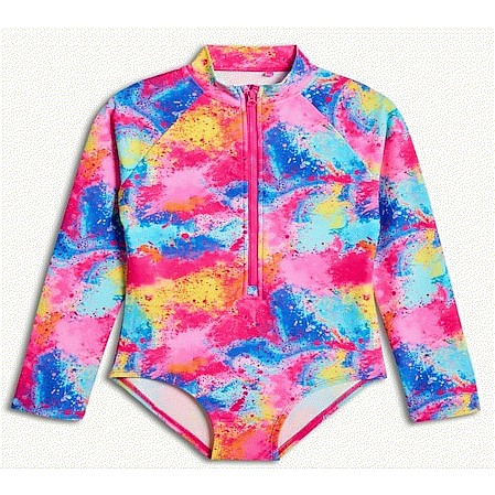 F&F Girls Tropical Print Long Sleeved Swimsuit in Pink