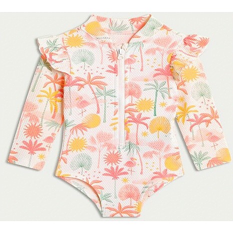 F&F Girls Palm Print Long Sleeved Swimsuit in Pink