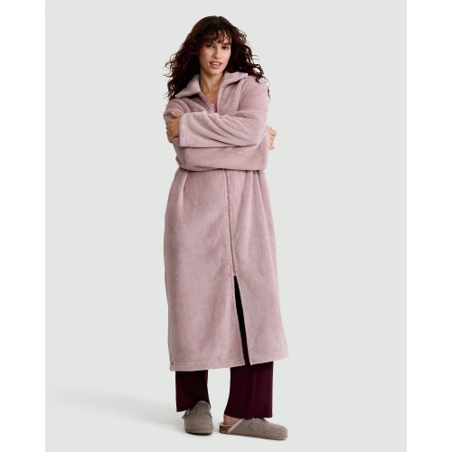 Zip Up Fleece Dressing Gown in Pink