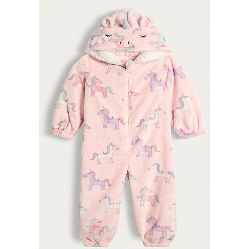 Girls Fleece Unicorn Hooded Onesie in Pink