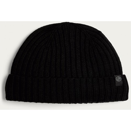 Thinsulate Fleece Lined Ribbed Knit Beanie Hat in Black