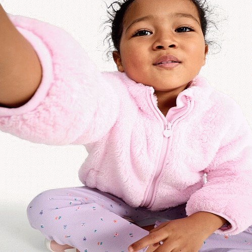 F&F Girls Borg Textured Zip Up Jacket in Pink