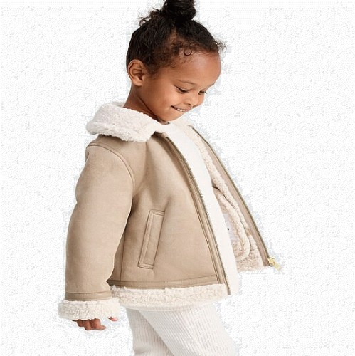 F&F Girls Faux Shearling Collar Jacket in Light Nude