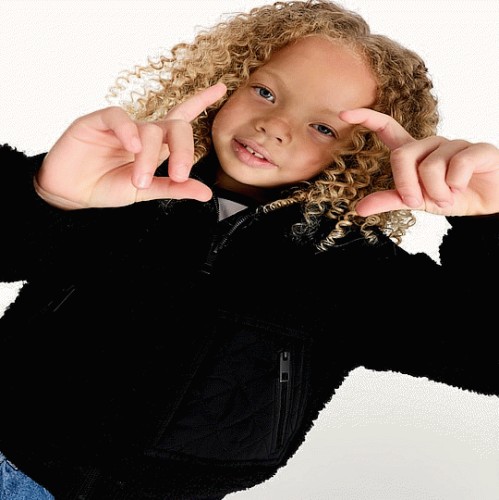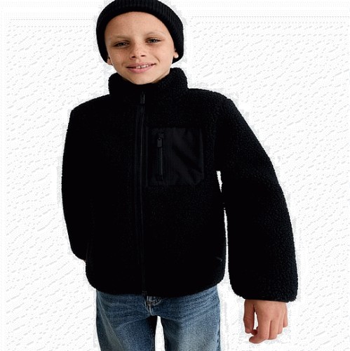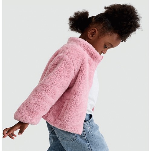 F&F Girls Textured Borg Zip Detail Jacket in Black