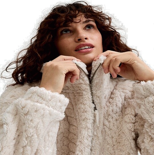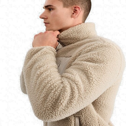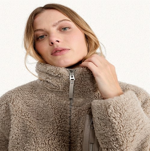 Borg Textured Zip Up Jacket in Neutral