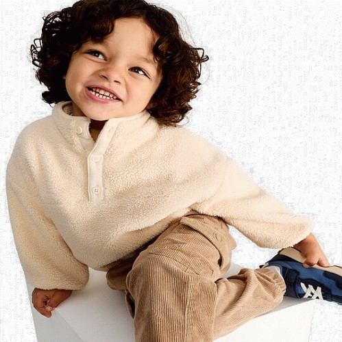 F&F Boys Fleece Button Placket Jacket in Cream