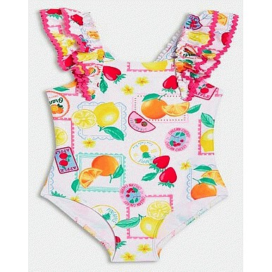 F&F Girls Fruit Print Ruffle Strap Swimsuit in White