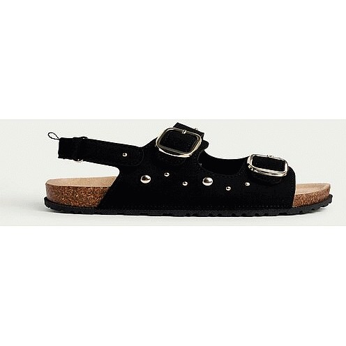 Girls Studded Buckle Strap Sandals in Black