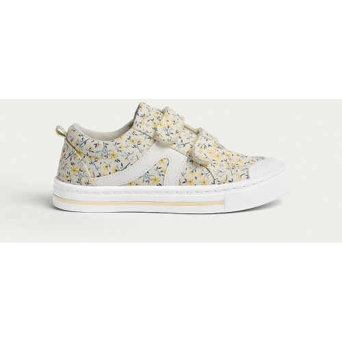 Girls Floral Print Strap Fastening Trainers in Yellow