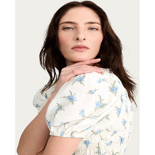 Floral Print Shirred Peplum Top in Cream