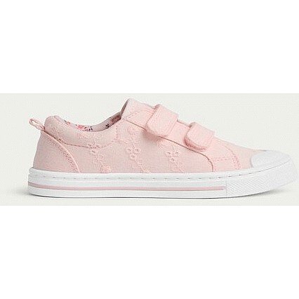 Girls Floral Embroidered Strap Fastening Trainers in Pink