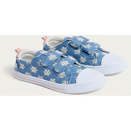 Girls Floral Print Touch Strap Fastening Trainers in Blue