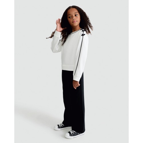 F&F Girls Bow Accent Stripe Sweatshirt in Cream