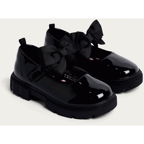 School Girls Patent Bow Detail Mary Jane Shoes in Black