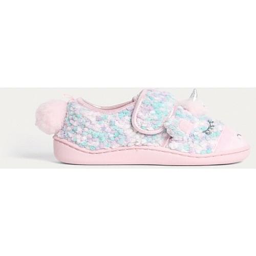 Girls Fluffy Unicorn Star Print Boot Slippers in Multi