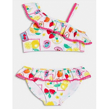 F&F Girls 2-Piece Fruit Print Ruffle Trim Bikini Set in White