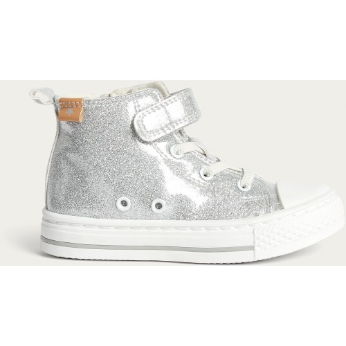 Girls Glitter Touch Fastening High Top Trainers in Silver