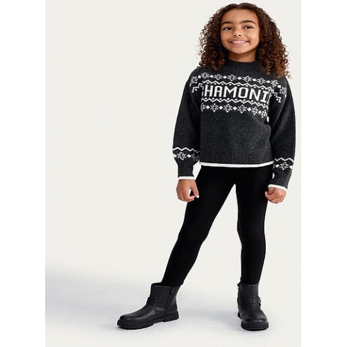 F&F Girls Heart Patch Fleece Lined Leggings in Black