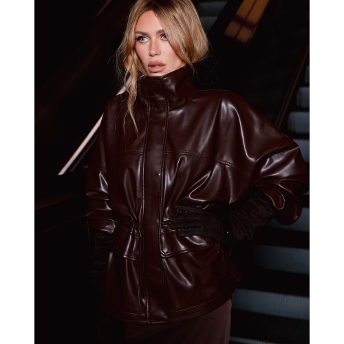 The F&F Edit Satin High Cowl Neck Sleeveless Blouse in Brown