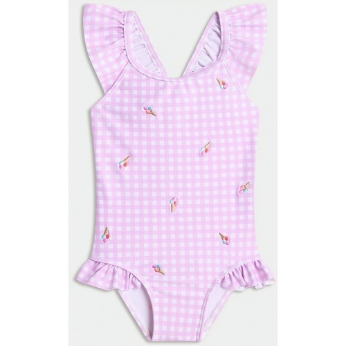 F&F Baby Gingham Ice Cream Print Bow Back Swimsuit in Lilac
