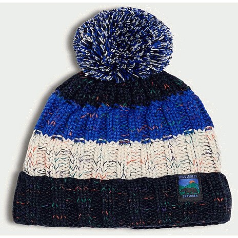 Baby Knitted Wilderness Explorer Pom Pom Beanie Hat in Blue