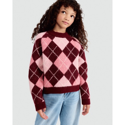 F&F Girls Argyle Knitted Jumper in Multi Pink