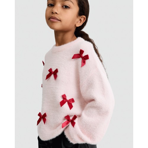 F&F Girls Knitted Satin Bow Jumper in Pink