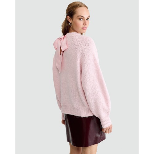 Knitted Satin Bow Back Jumper in Pink