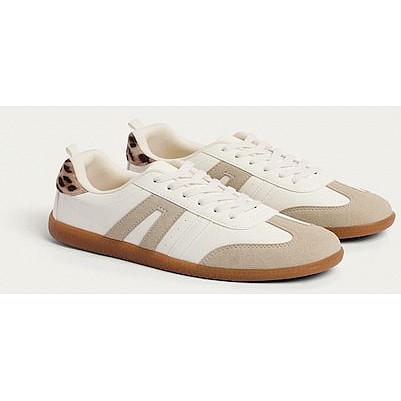 Leopard Print Panelled Lace Up Trainers in White