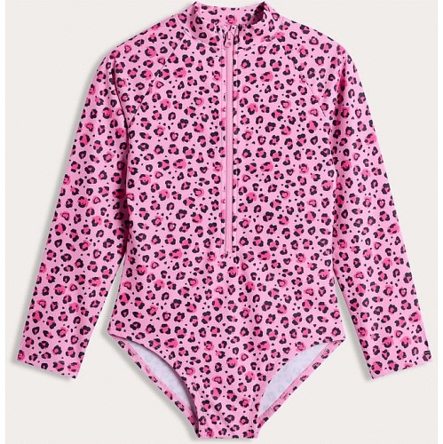 F&F Girls Leopard Print Long Sleeved Swimsuit in Pink
