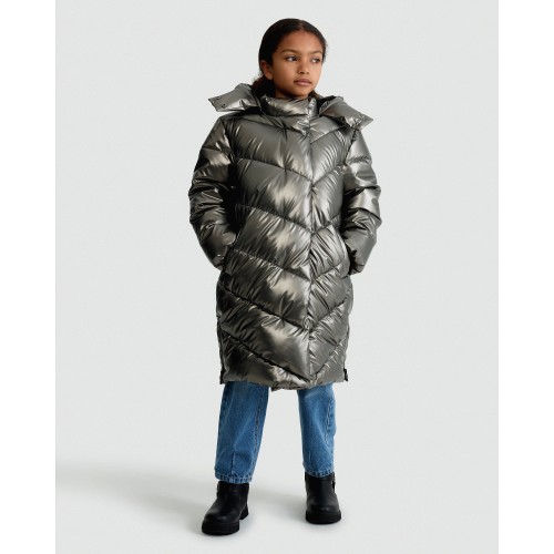 F&F Girls Metallic Chevron Quilted Hooded Water Resistant Coat in Grey