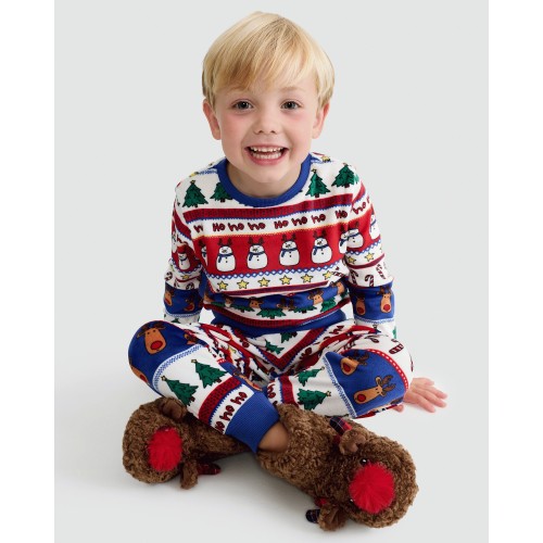 Boys Minky Fleece Festive Print Pyjamas in Multi