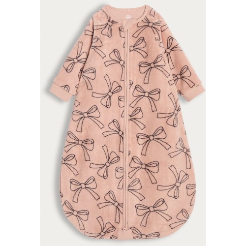 Fleece Bow Print 1.5 Tog Sleeping Bag in Pink