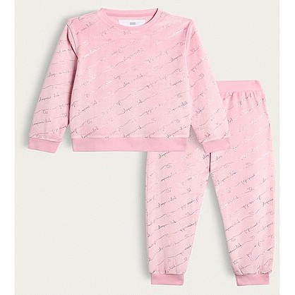 Girls Minky Textured Panda Print Pyjama Set in Blue