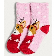 Girls Fluffy Dog Reindeer Cosy Socks in Multi