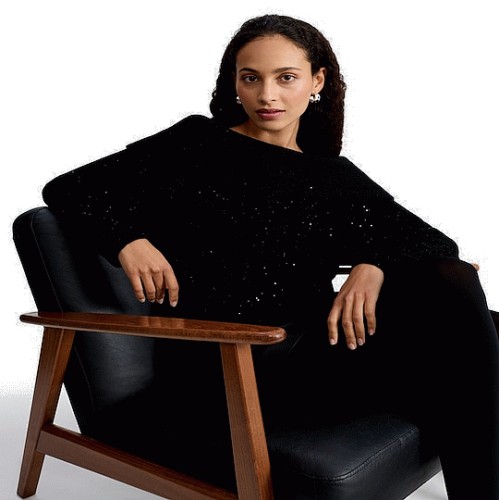 Cold Shoulder Sequin Embellished Jumper with Wool in Black