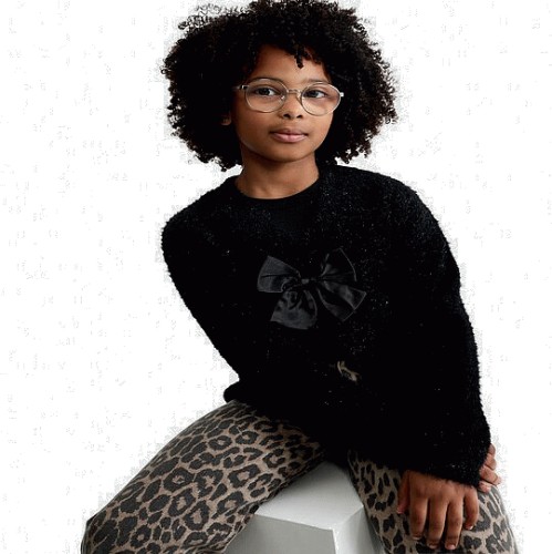 F&F Girls Fluffy Bow Detail Cardigan in Black