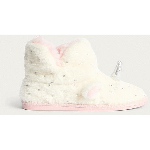 Girls Fluffy Unicorn Star Print Boot Slippers in Multi