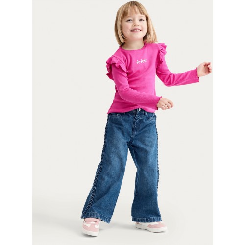F&F Girls Pure Cotton Braided Side Wide Leg Jeans in Blue