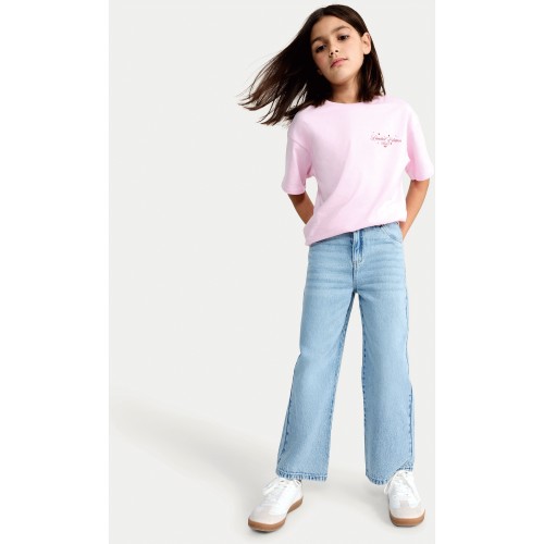 F&F Girls Pure Cotton Heart Wide Leg Jeans in Blue