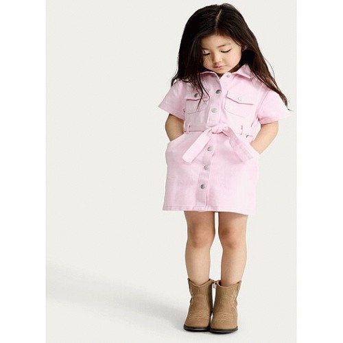 F&F Girls Pure Cotton Belted Denim Dress in Pink