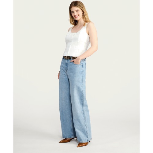 Pure Cotton High Rise Wide Leg Jeans in Blue
