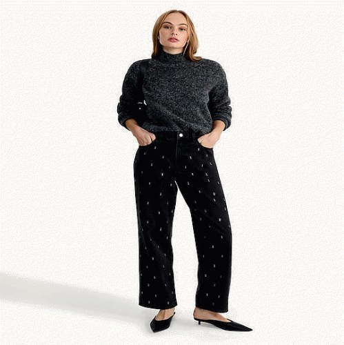 Pure Cotton Diamante Embellished Wide Leg Jeans in Black
