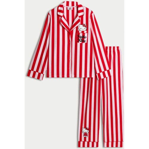 Hello Kitty Pure Cotton Stripe Print Pyjama Set in Multi Red