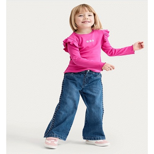 F&F Girls Pure Cotton Braided Side Wide Leg Jeans in Blue