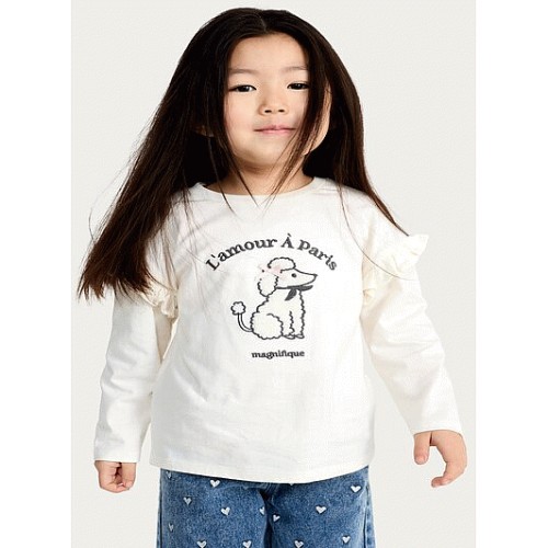 F&F Girls Pure Cotton Poodle Print Ruffle Top in Cream